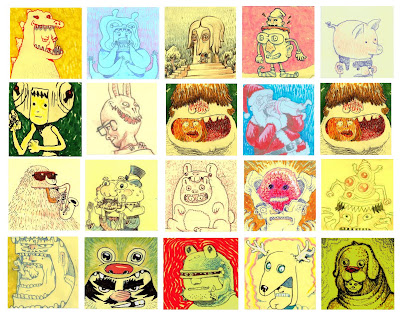 I've noticed that something i tend to draw alot is little people inside of people, or people using animal heads as hats. when i doodle and don't think about it it's something that i draw over and over again. here are some post its with the same theme.